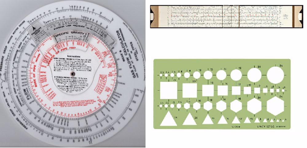 Everything was in pencil and paper with the engineer's key piece of equipment - the slide rule. Most of these were the linear type with trigonometric and loglog functions, some were pocket sized and others were cylindrical. As the slide rule was concerned only with the numerical value the engineer became very adept at fixing the decimal point mentally. Specialist calculators such as the rotary gas flow calculators calibrated for length and diameter of pipe, fluid type, flow and pressure drop were particularly useful.